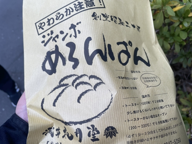 拝んだ後はジャンボめろんぱんを食べて来ました。