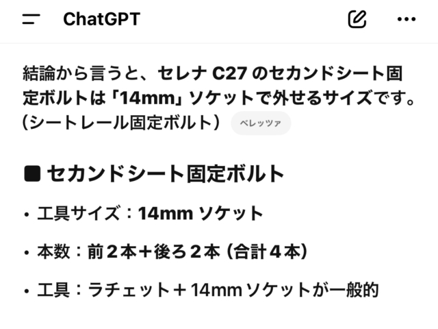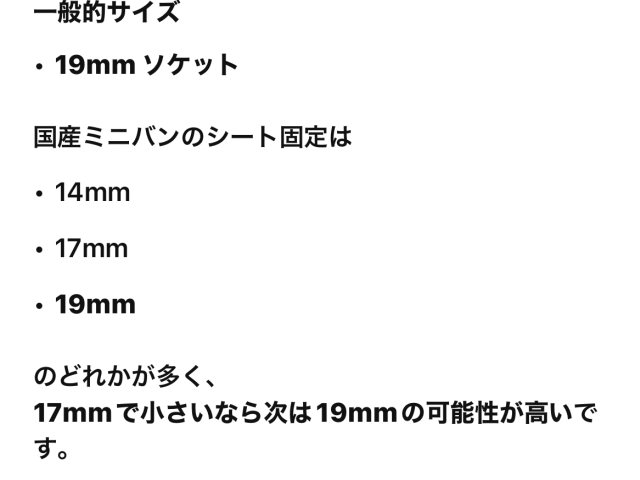 セレナのセカンドシートのボルトサイズは?